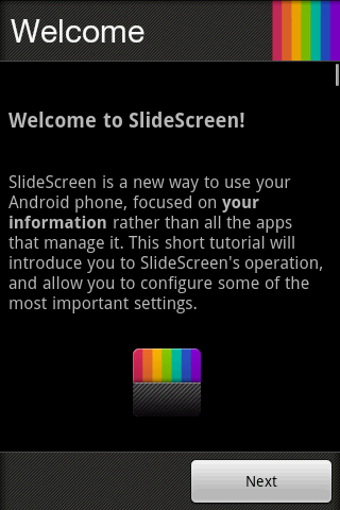 SlideScreen plantea un escritorio basado en barras horizontales agrupadas por colores y con pequeños iconos para señalar qué tipo el tipo de información contiene cada una. Correo electrónico, datos de llamadas, mensajes cortos, Twitter, RSS o tu calendario se presentan en una misma pantalla, teniendo siempre en cuenta la información más reciente.